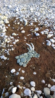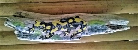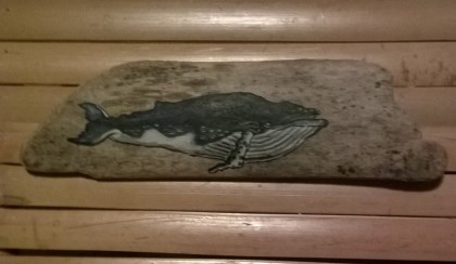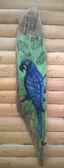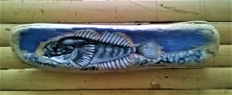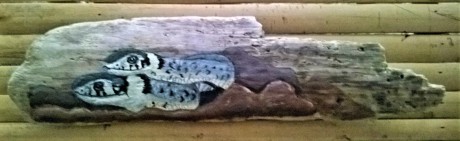 Die Treibholzstücke sind mit Aquarell bemalt und die Farben sind mit einem Fixierspray geschützt.